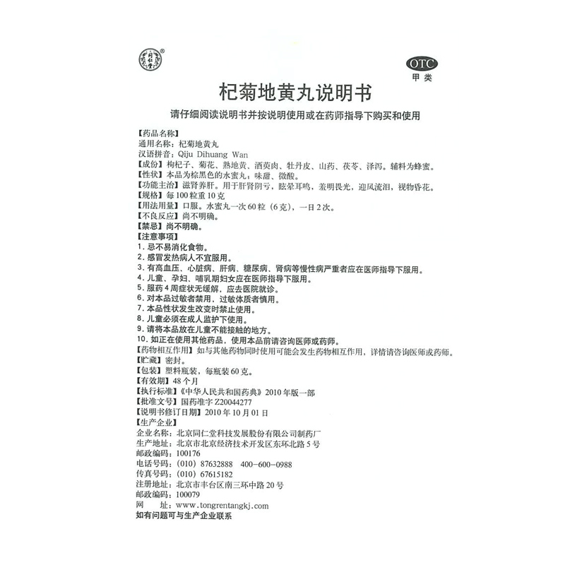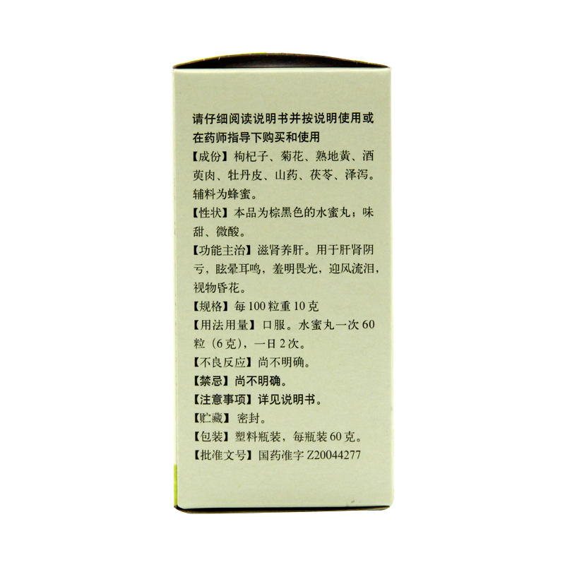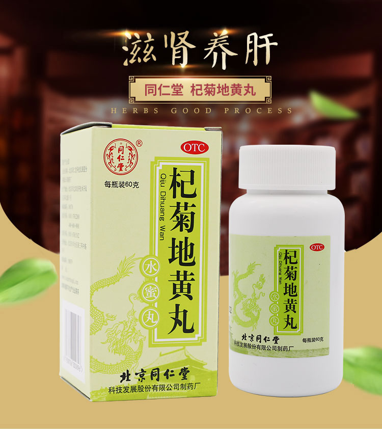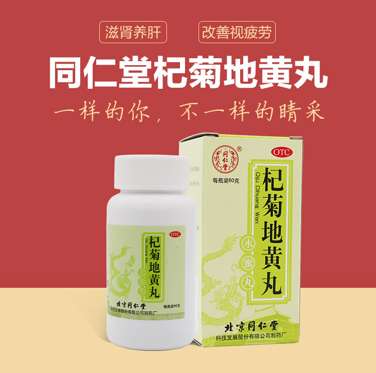 生產日期 2017年11月03日 至 2018年11月10日; 品牌 同仁堂; 批準文號 國藥準字Z20044277; 套餐類型 【1盒】一次6g,一日2次 【3盒】約15天用量 【6盒】約30天用量; 生產企業 北京同仁堂科技發展股份有限公司; 規格 60g*1瓶/盒; 類別 中藥; 產品劑型 丸劑; 用法 口服; 使用劑量 一次60粒(6克),一日2次; 藥品通用名 杞菊地黃丸; 藥品名稱 杞菊地黃丸; 有效期 48個月; 適用人群 不限; 藥品分類 非處方藥; 疾病 腎陰虧 肝腎虧虛 肝腎陰虧; 癥狀 耳鳴 眩暈 迎風流淚 視物昏花 視物模糊 頭暈耳鳴 目澀畏光 畏光;