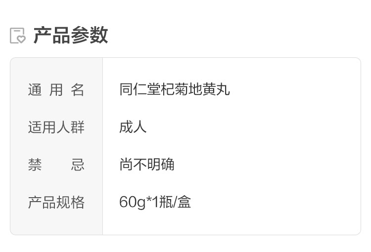 生產日期 2017年11月03日 至 2018年11月10日; 品牌 同仁堂; 批準文號 國藥準字Z20044277; 套餐類型 【1盒】一次6g,一日2次 【3盒】約15天用量 【6盒】約30天用量; 生產企業 北京同仁堂科技發展股份有限公司; 規格 60g*1瓶/盒; 類別 中藥; 產品劑型 丸劑; 用法 口服; 使用劑量 一次60粒(6克),一日2次; 藥品通用名 杞菊地黃丸; 藥品名稱 杞菊地黃丸; 有效期 48個月; 適用人群 不限; 藥品分類 非處方藥; 疾病 腎陰虧 肝腎虧虛 肝腎陰虧; 癥狀 耳鳴 眩暈 迎風流淚 視物昏花 視物模糊 頭暈耳鳴 目澀畏光 畏光;