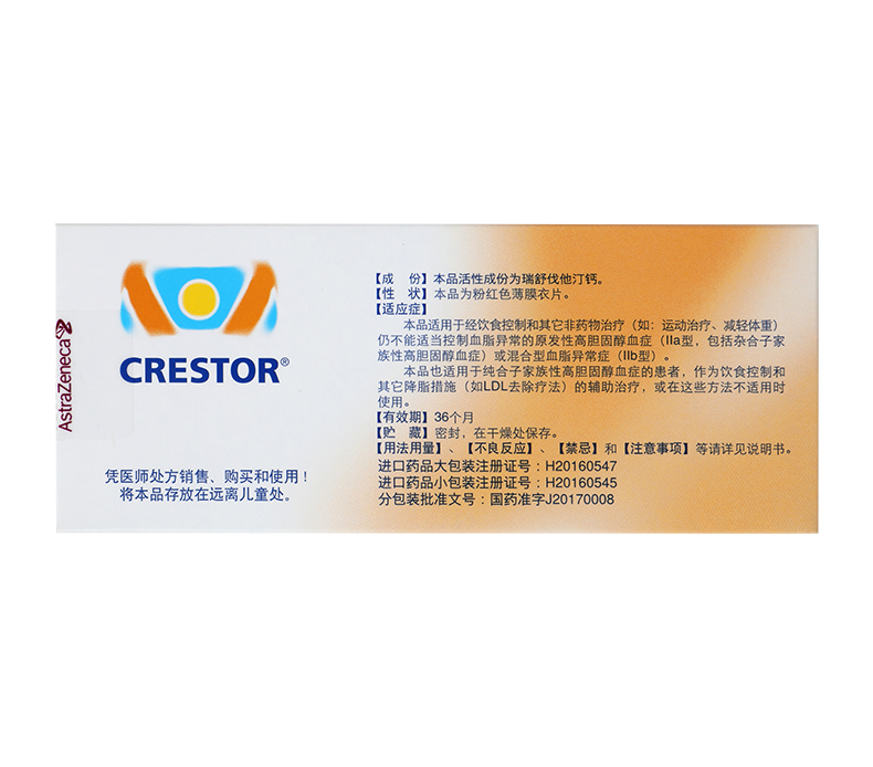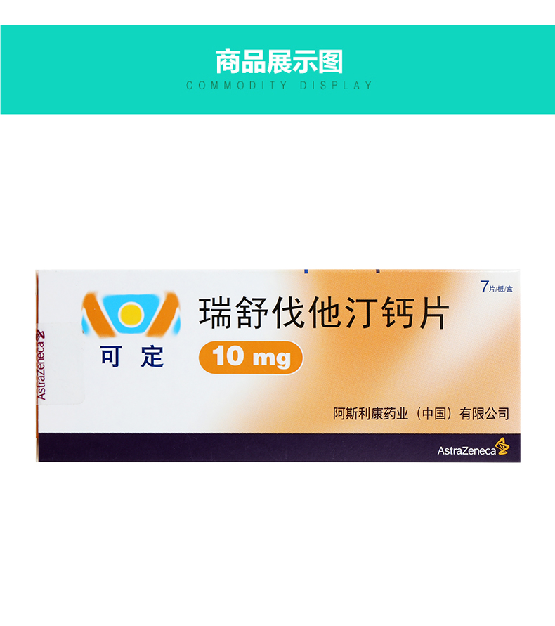 品牌 可定; 批準文號 國藥準字J20170008; 套餐類型 標準裝; 生產企業 阿斯利康藥業(中國)有限公司; 產品劑型 片劑; 用法 口服; 使用劑量 詳見說明書; 藥品通用名 瑞舒伐他汀鈣片; 藥品商品名 可定; 藥品名稱 可定 瑞舒伐他汀鈣片; 有效期 36個月; 適用人群 成人; 藥品類別 化學藥; 藥品分類 處方藥; 疾病 混合型血脂異常癥 原發性高膽固醇血癥; 癥狀 血脂異常; 藥品規格 10mg*7片/盒;