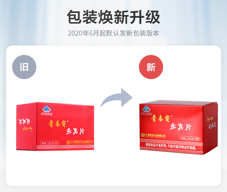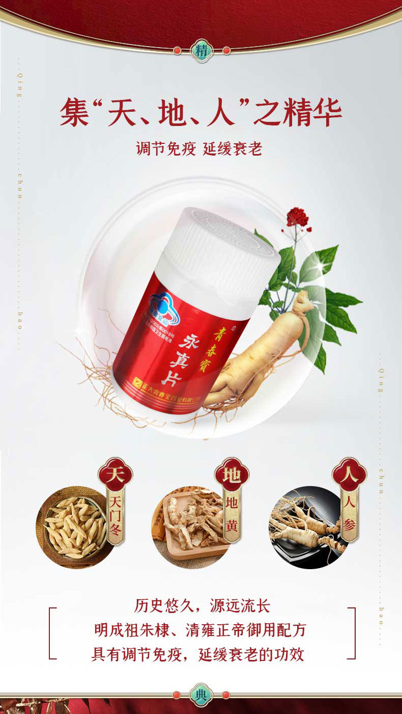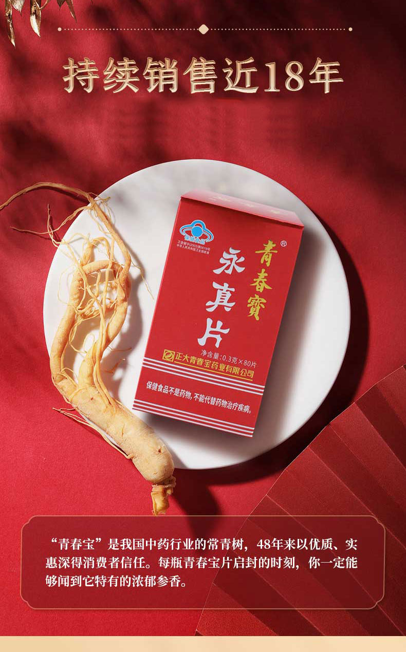 • 商品名称:青春寶牌永真片0.3g片*80片*6瓶延緩衰老免疫力低下者調節免疫力