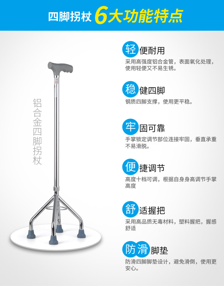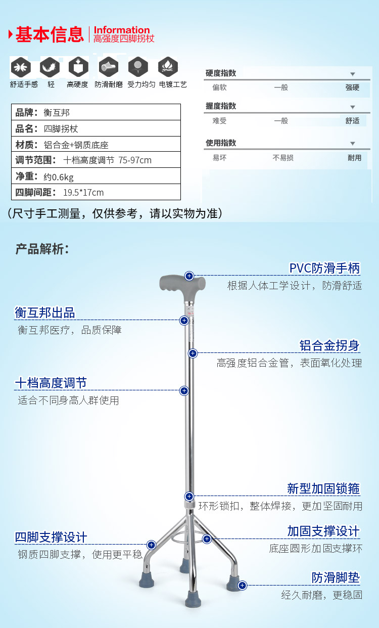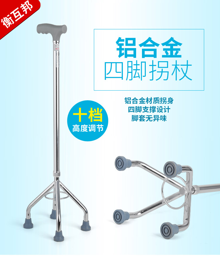 型號 GZ-G06; 品牌 衡互邦; 產地 河北; 顏色分類 1件; 生產企業 衡水多米諾醫療器械有限公司; 增值服務 無; 適用人群 老年; 選購熱點 四腳手杖; 拐杖類別 四腳; 保健用品產品名稱 四腳手杖;