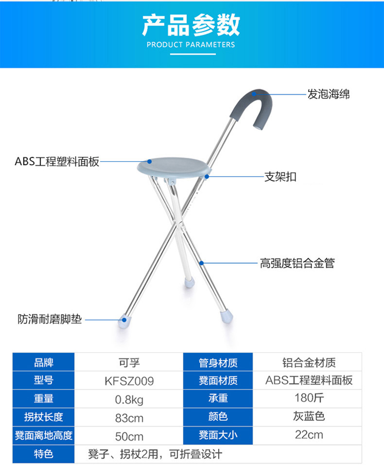 品牌 可孚; 輪椅拐杖 拐杖; 顏色分類 拐杖凳; 批準文號 湘長械備 20160025; 生產企業 湖南可孚醫療科技發展有限公司; 是否為進口 否;