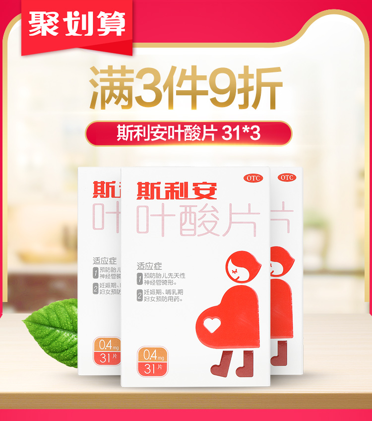 品牌 創盈; 批準文號 國藥準字H10970079; 套餐類型 套餐一 套餐二 下單得4盒 夫妻2月量; 生產企業 北京斯利安藥業有限公司; 規格 0.4mg*31片/盒; 類別 化學藥; 產品劑型 片劑; 用法 口服; 使用劑量 一次0.4毫克,一日1次,詳見說明書; 藥品通用名 葉酸片; 藥品商品名 斯利安; 藥品名稱 斯利安 葉酸片; 有效期 36個月; 適用人群 婦科; 藥品分類 非處方藥; 疾病 預防胎兒先天性神經管畸形 維生素缺乏癥; 癥狀 預防胎兒先天性神經管畸形 發育遲緩;