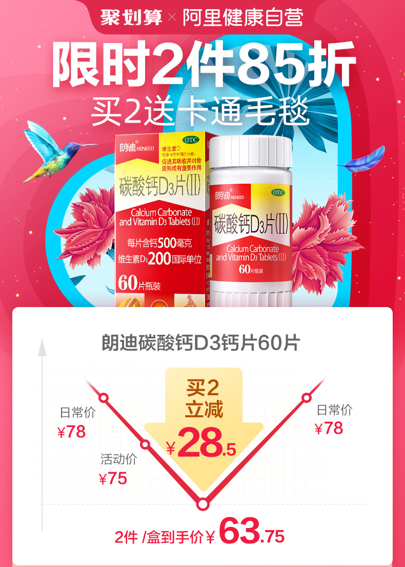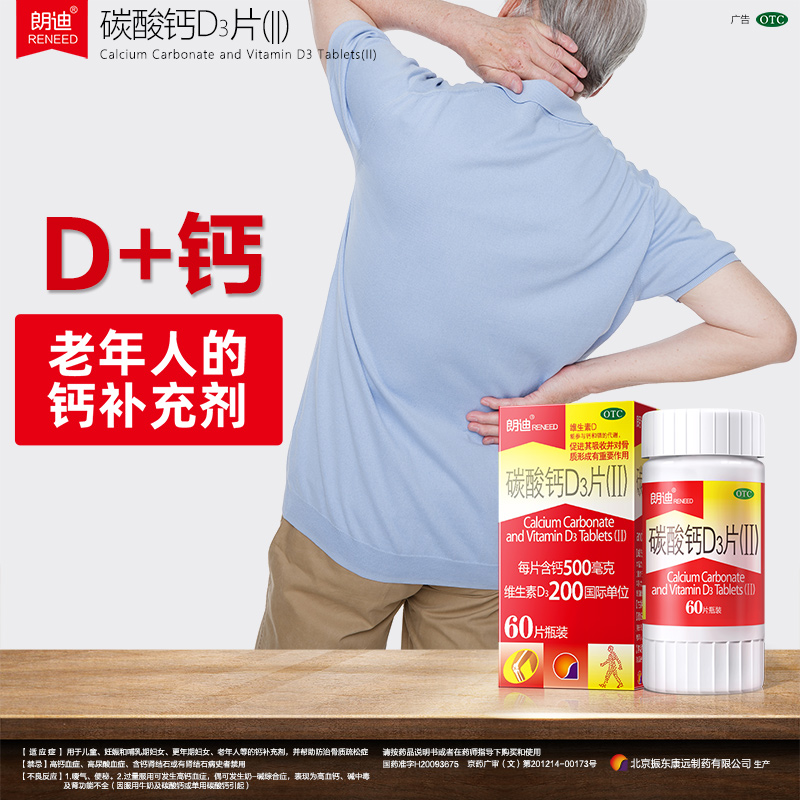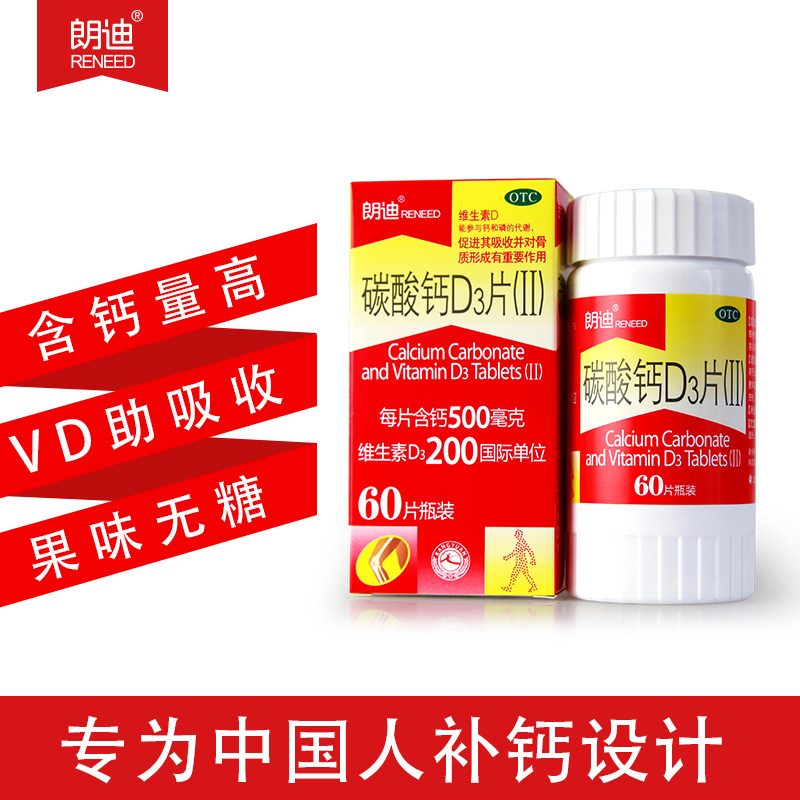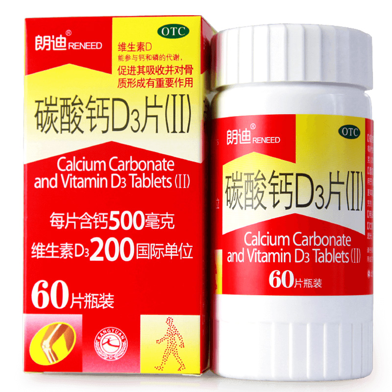 品牌 朗迪; 批準文號 國藥準字H20093675; 套餐類型 1盒 2盒包郵| 維D助鈣吸收 1盒| 國人補鈣優選 【原品1盒】+同仁堂西洋參片30g; 生產企業 北京振東康遠制藥有限公司; 規格 60片*1瓶/盒; 類別 復方制劑; 產品劑型 片劑; 用法 口服; 使用劑量 一次1片,一日1-2次; 藥品通用名 碳酸鈣D3片(II); 藥品商品名 碳酸鈣D3片(II); 藥品名稱 碳酸鈣D3片(II); 有效期 24個月; 適用人群 兒童 成人; 藥品分類 非處方藥; 疾病 礦物質缺乏癥 維生素缺乏癥; 癥狀 發少發黃;