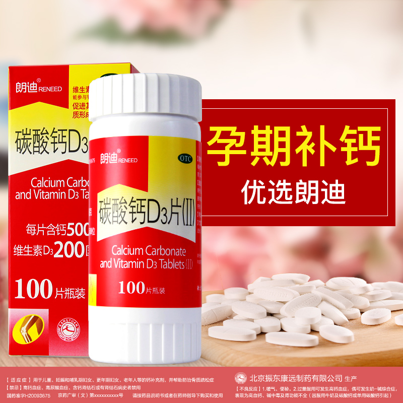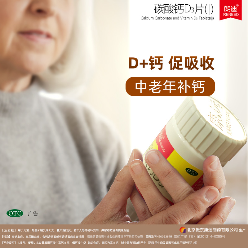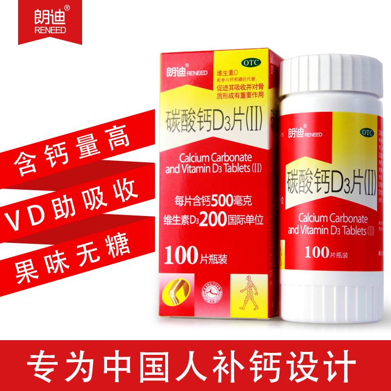 品牌 朗迪; 批準文號 國藥準字H20093675; 套餐類型 標準裝 本品3盒裝; 生產企業 北京康遠制藥有限公司; 規格 100片*1瓶/盒; 類別 復方制劑; 產品劑型 片劑; 用法 口服; 使用劑量 成人,一次1片,一天1~2次;兒童,一次半片,一天1~2次; 藥品通用名 碳酸鈣D3片(II); 藥品名稱 碳酸鈣D3片(II); 有效期 24個月; 適用人群 成人; 疾病 礦物質缺乏癥; 癥狀 骨質疏松癥;