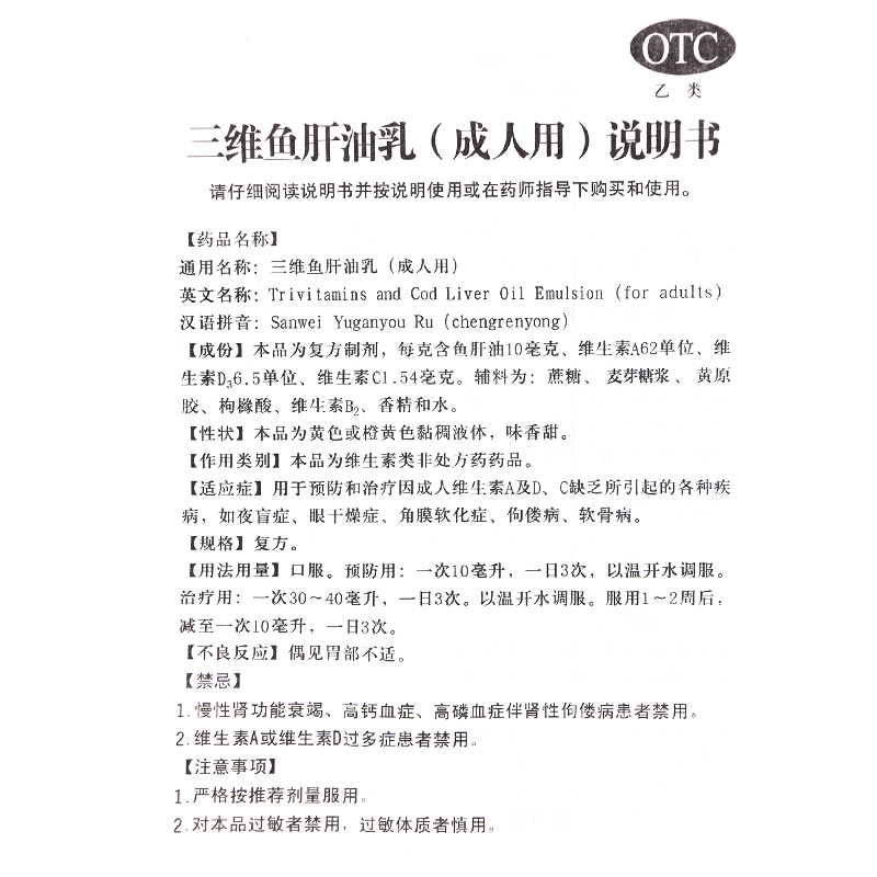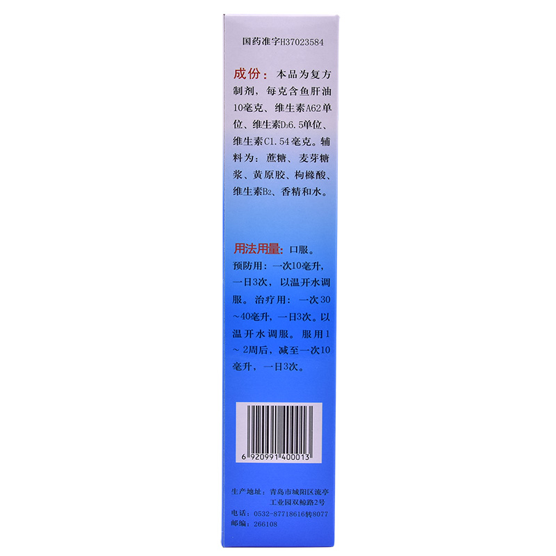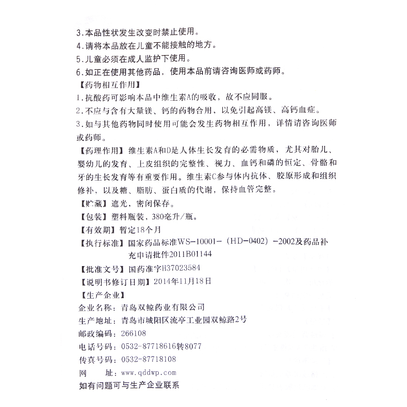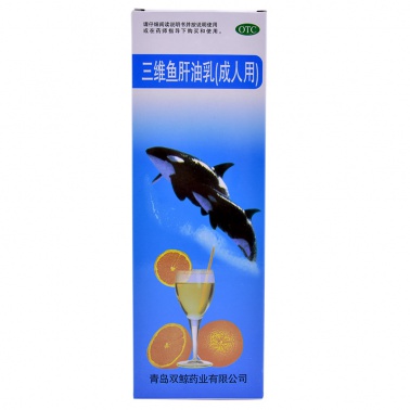 生產日期 2018年12月26日 至 2019年07月30日; 產品劑型 口服散劑; 使用劑量 1次10ml,1日3次; 品牌 雙鯨; 套餐類型 本品1盒 本品5盒 優惠裝 節省5元 本品10盒 特惠裝 立省20元; 有效期 暫定18個月; 用法 口服; 疾病 維生素缺乏癥; 癥狀 維生素d缺乏; 藥品分類 非處方藥; 藥品名稱 三維魚肝油乳(成人用); 藥品通用名 三維魚肝油乳(成人用); 適用人群 不限; 批準文號 國藥準字H37023584; 生產企業 青島雙鯨藥業有限公司; 規格 380ml*1瓶/盒; 類別 復方制劑;