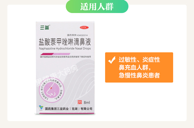 三益鹽酸萘甲唑啉滴鼻液滴鼻劑0.1%8ml/支急慢性鼻炎鼻竇炎過敏性