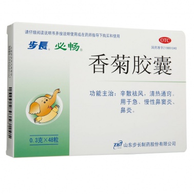 產品劑型 膠囊; 用法 口服; 疾病 鼻炎 鼻竇炎; 癥狀 急、慢性鼻竇炎 鼻炎 流涕 祛濕通竅 鼻塞 鼻癢 鼻痛; 藥品分類 非處方藥; 適用人群 不限; 類別 中藥; 套餐類型 3盒優惠裝 標準裝; 品牌 步長; 批準文號 國藥準字Z19991040; 使用劑量 一次2到4粒,一日3次; 藥品通用名 香菊膠囊; 藥品名稱 香菊膠囊; 規格 0.3g*48粒/盒; 生產企業 山東步長制藥股份有限公司; 有效期 24個月;