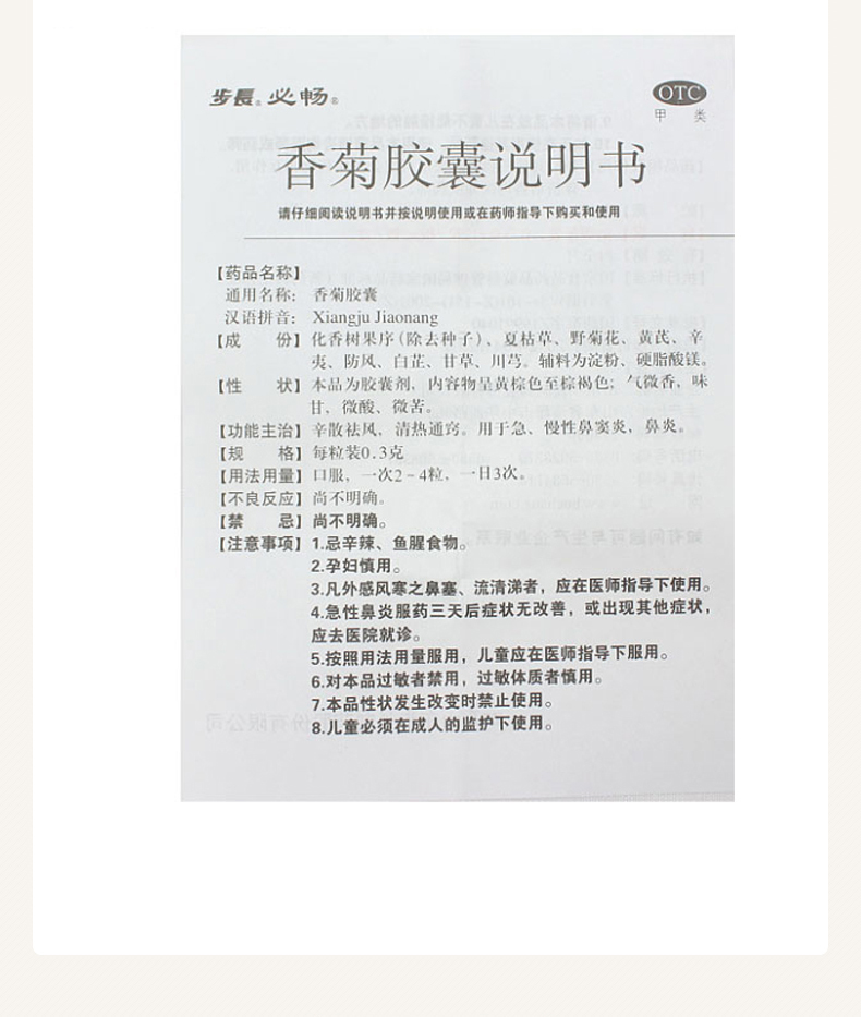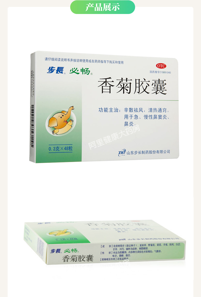 • 商品名称:步長香菊膠囊0.3g*48粒/盒清熱通竅 治療急慢性鼻炎 鼻竇炎