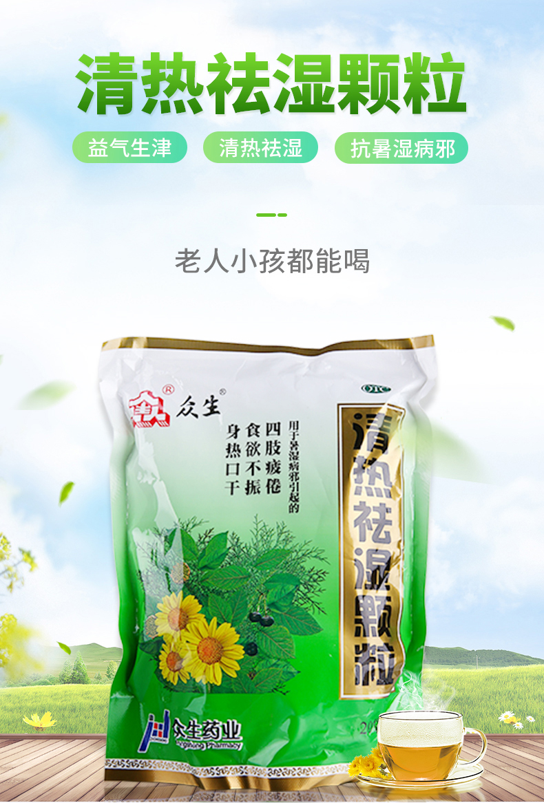 產品劑型 顆粒; 使用劑量 一次1袋,一日2~3次。; 品牌 眾生; 套餐類型 標準裝; 有效期 30個月; 用法 口服; 疾病 暑濕 益氣 食欲不振 扁桃體炎; 癥狀 口干 食欲不振 發熱 四肢疲倦 身熱; 藥品分類 非處方藥; 藥品名稱 清熱祛濕顆粒; 藥品通用名 清熱祛濕顆粒; 適用人群 兒童 成人; 批準文號 國藥準字Z44023763; 生產企業 廣東眾生藥業股份有限公司; 規格 10g*20袋/包; 類別 中藥;