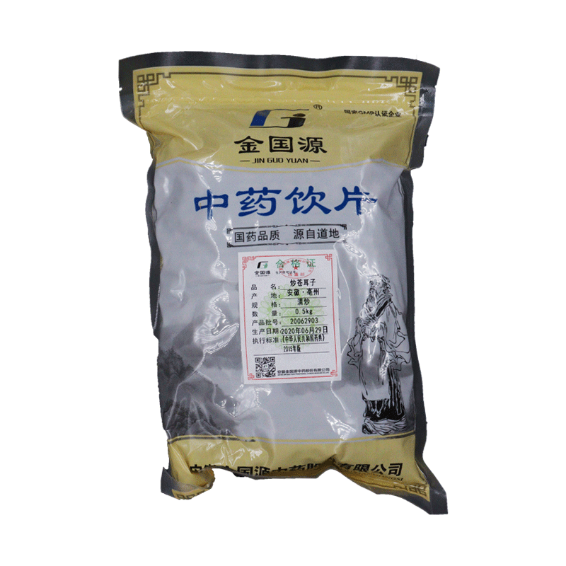 品牌 金國源; 產地 安徽·亳州; 凈含量 500g; 套餐類型 10g; 生產企業 安徽金國源中藥股份有限公司; 品名 炒蒼耳子; 功能主治 散風寒,通鼻竅,祛風濕;